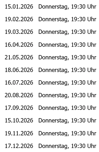Jeden 3. Donnerstag im Monat treffen wir uns im Zoom- Meeting um 19:30 Uhr.